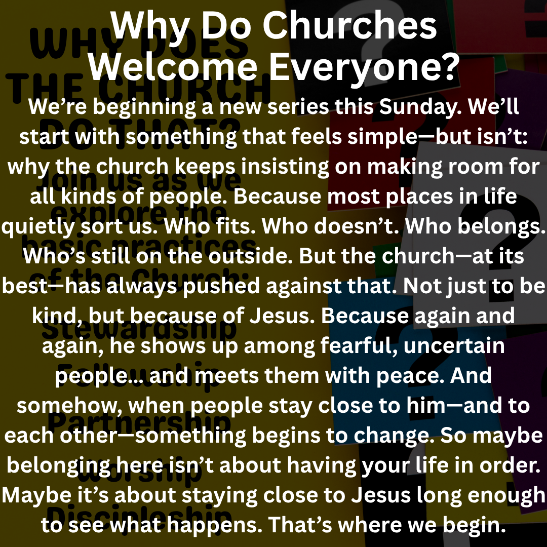We want you to feel welcome and at home. We know that your first time at a church, any church, brings up some questions. So ask us anything!